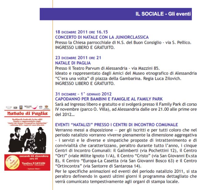 Niente fuochi artificiali la notte di capodanno e neppure concerti in grande stile: il Comune (purtroppo) non ha i soldi, ma davvero tante sono le iniziative natalizie organizzate dal Comune.
