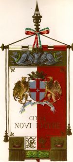 La denominazione di Città, trova un riferimento preciso in alcuni elementi del gonfalone come le parti metalliche, i ricami, i cordoni, l’iscrizione e le bullette a spirale che, nel caso di Novi Ligure, sono color oro. Secondo l’attuale prassi, infatti, queste parti sono argentate se si tratta di un comune e dorate per le province e le città.