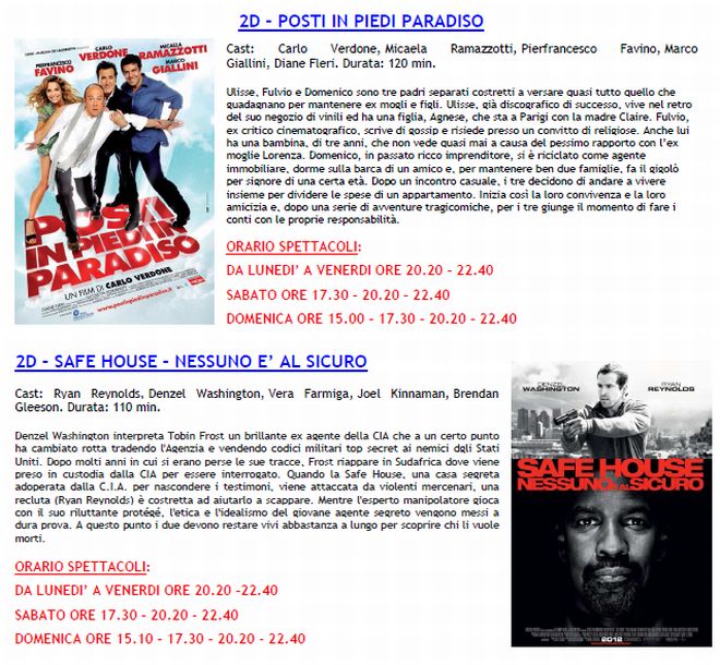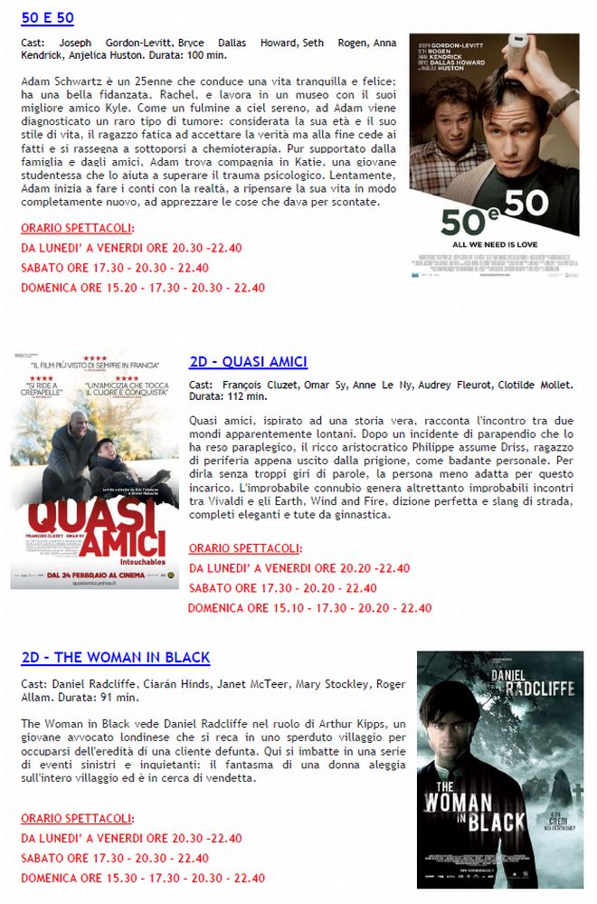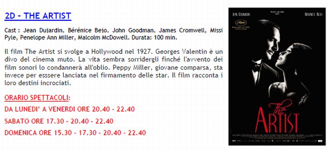 Arriva il film considerato il migliore della stagione “The Artist” vincitore di 4 oscar tra cui miglior film, miglior regia, miglior attore protagonista e miglior colonna sonora. Il week end però propone anche altri film come “The Woman in Black” con Daniel Radcliffe il giovane attore che impersonava Harry Potter chiamato ad un ruolo da protagonista in panni diversi dal “maghetto”. Come se la caverà? Poi c’è il gettonatissimo Carlo verdone con “Posti in piedi in Paradiso” e quello che potrebbe essere una sorpresa: “Safe House – Nesssuno è al sicuro”.
