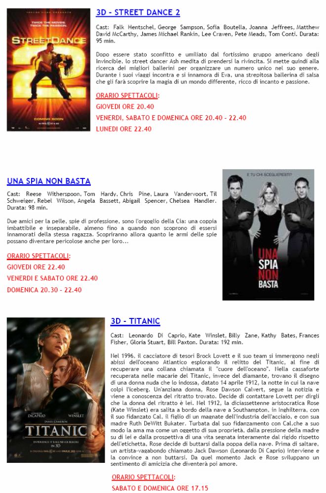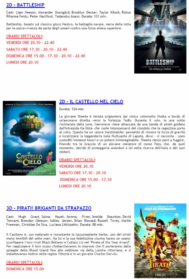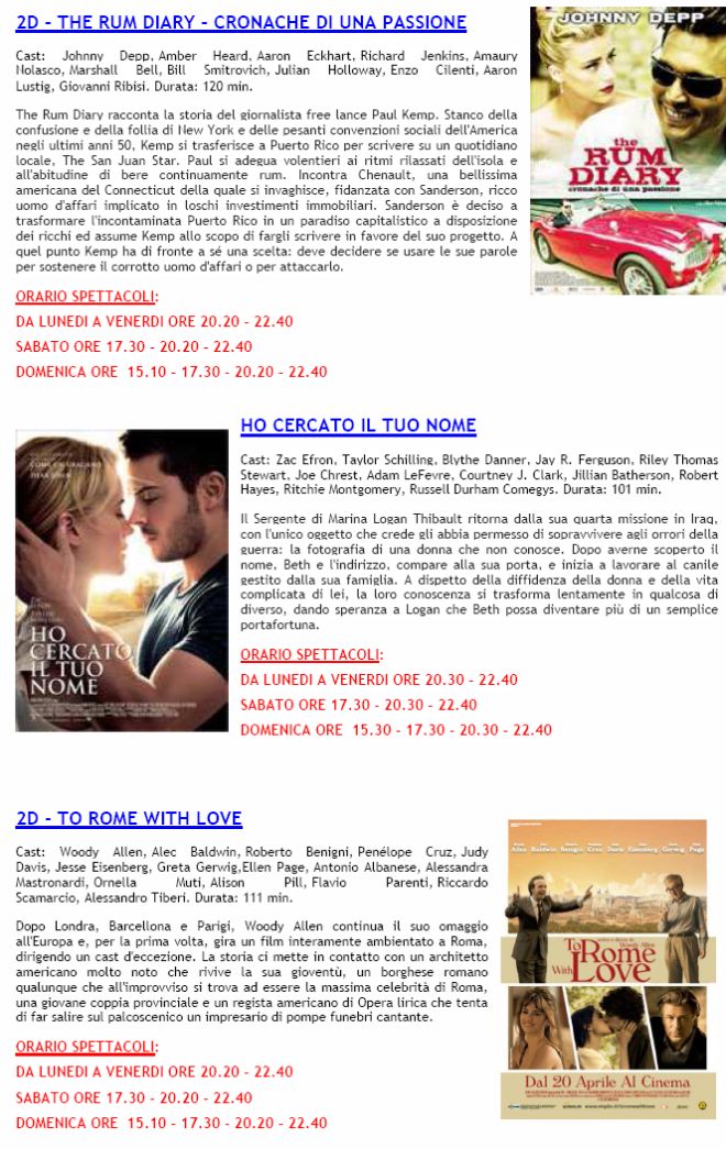 Ecco, comunque, tutte le trame e gli orari dei film in programmazione.