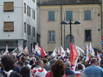I vessilli hanno poi indicato la partecipazione di Legambiente, del WWF, della FIOM-CGIL, dei movimenti pacifisti, degli anarchici, del Prc, Sel, Pdci, Movimento 5 > Stelle.