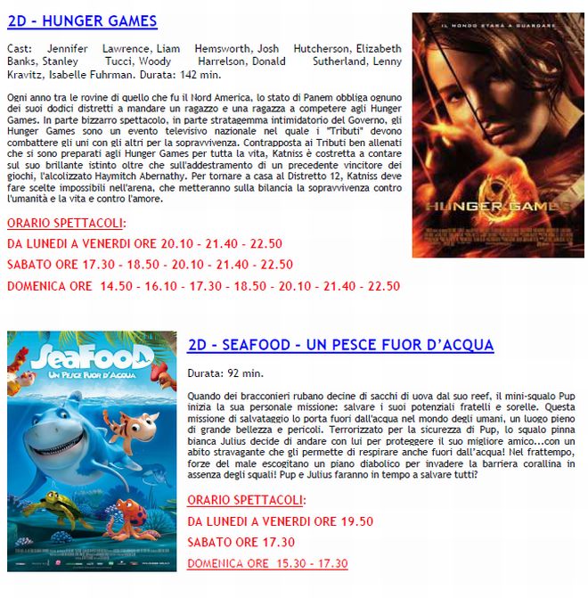 Il film della settimana è sicuramente “Hunger Games” capolavoro della stagione di cui domani leggerete un’ampia recensione. Da non perdere assolutamente. Per chi non li ha ancora visti, invece suggeriamo “The Avengers” altro grande film e “To Rome with love” di Woody Allen. Le recensioni di questi ultimi due le trovate nella nostra rubrica settimanale: é sufficiente cliccare sulla parola “Cinema” nella sezione “Tag”.
