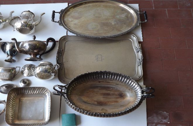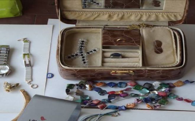 Tra gli oggetti recuperati: 2 piatti in argento, 1 centrotavola in argento, 5 teiere, 1 bracciale in argento, 4 orologi, 5 collane ed altri oggetti di argenteria e monili.
