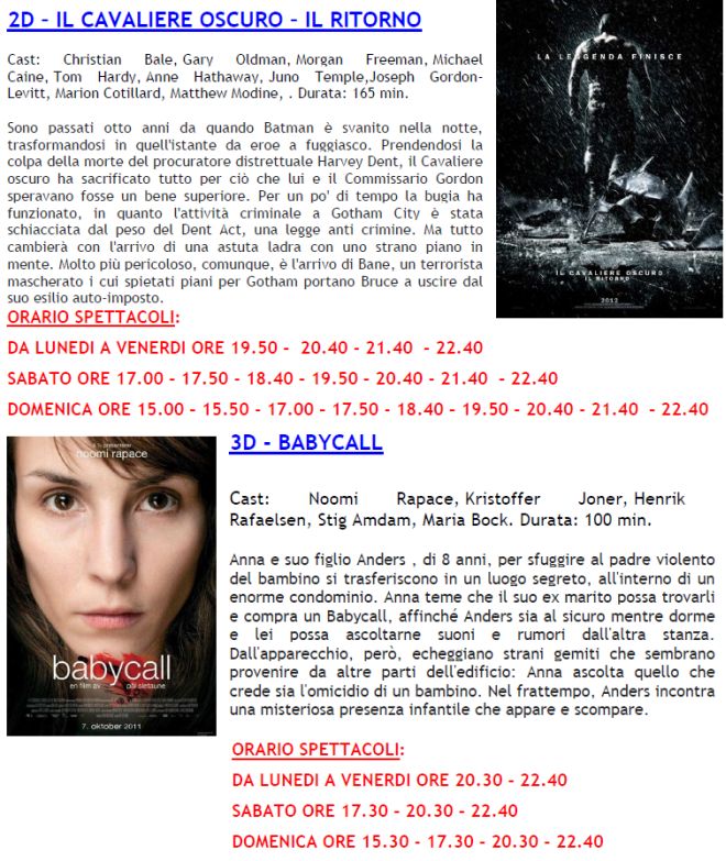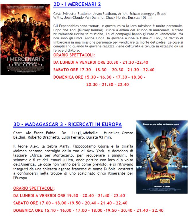 Visto il maltempo, domenica 2 settembre la Multisala megaplex Stardust apre prima ed aumenta il numero degli spettacoli. Due dei migliori film della stagione, vale a dire “Il Cavaliere Oscuro – il Ritorno” e “Madagascar 3” si potranno vedere praticamente a qualsaisi ora.