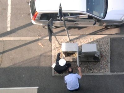 I Vigili urbani alla ricerca del guasto (Foto di Annamaria Agosti)