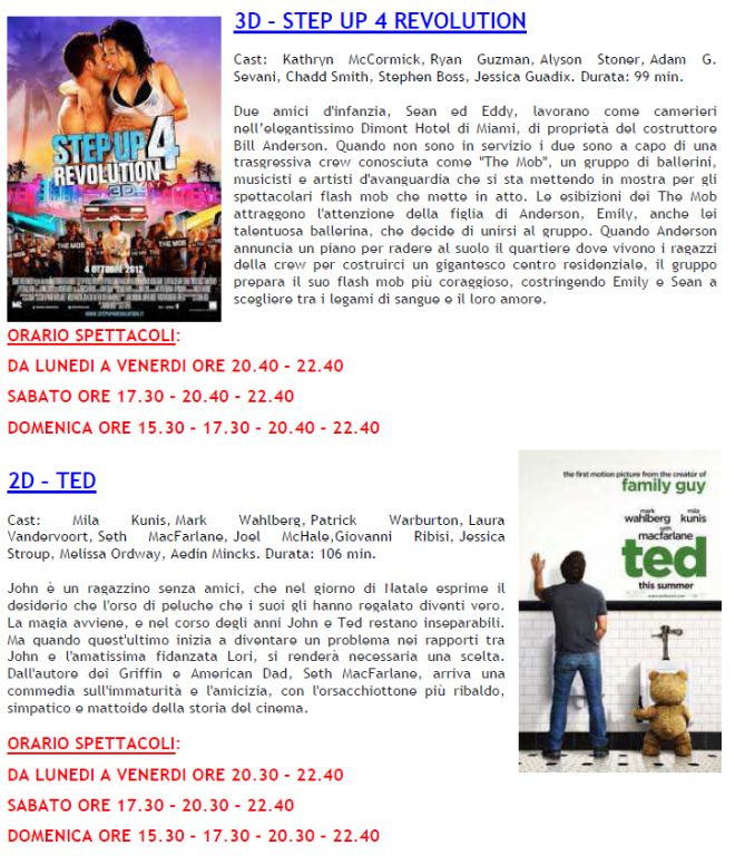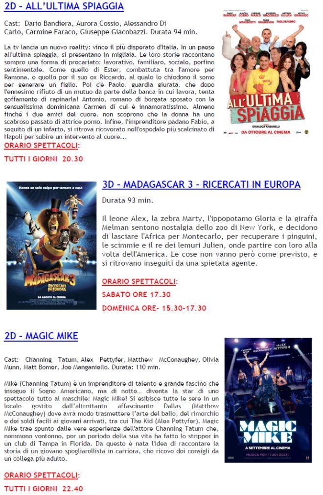 Nove film in programmazione alla Multisala Megaplex Stardust nel week end con alcuni sicuramente molto orginali come “Ted” o “Magic Mike”. mentre resiste da oltre un mese e mezzo “Madagascar 3” assolutamente da non perdere per chi non l’ha ancora visto.
