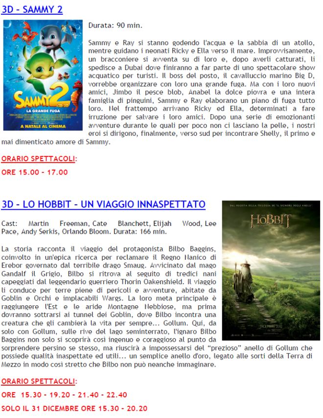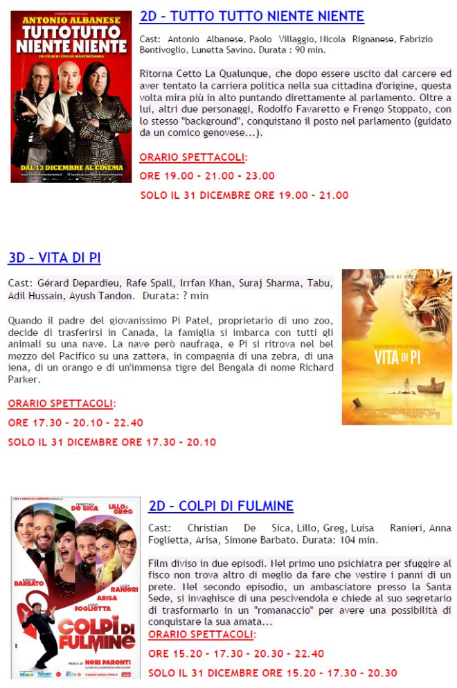 Questi comunque i film in programmazione nel week end, ricordando che nella giornata di lunedì 31, l’ultimo spettacolo è alle 20,30.
