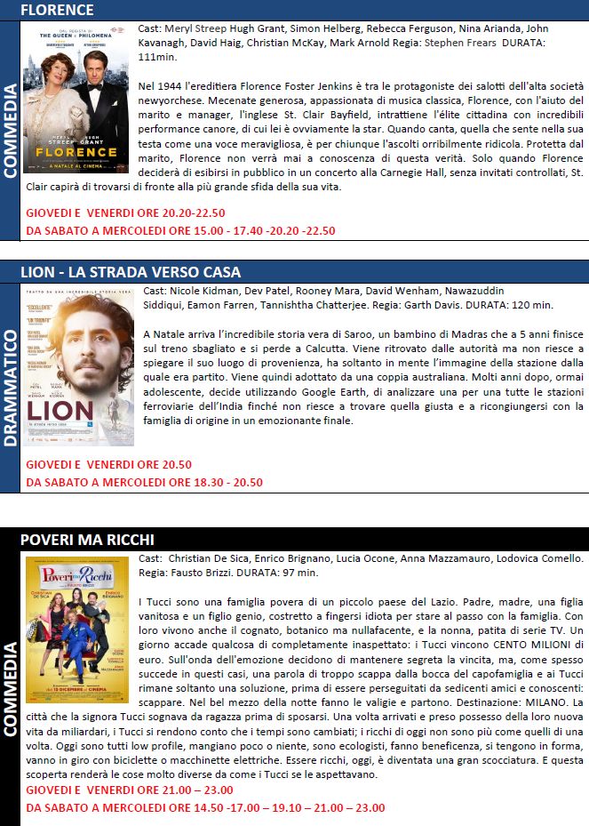 Oltre a Rogue One due film si distaccano dal cliché natalizio: “Florence”film commedia con Meryl Streep e “Lion” film drammatico con Nicole Kidman e Rooney Mara.
