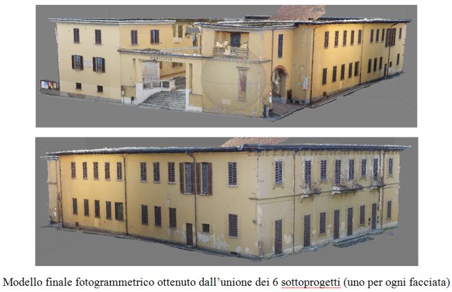 - La fotogrammetria ha consentito la elaborazione di ortofoto dei prospetti esterni e la successiva vettorializzazione degli stessi.