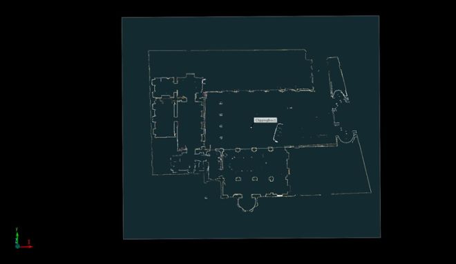 I punti in cui posizionare il laser per le rilevazioni sono stati preliminarmente studiati in maniera tale da ridurre le zone d’ombra. Particolare attenzione è stata posta al rilievo degli ambienti solaio ligneo cassettonato, in cui la fitta maglia di travi e travetti poteva creare delle fastidiose zone d’ombra con conseguente mancanza di dato geometrico e cromatico.