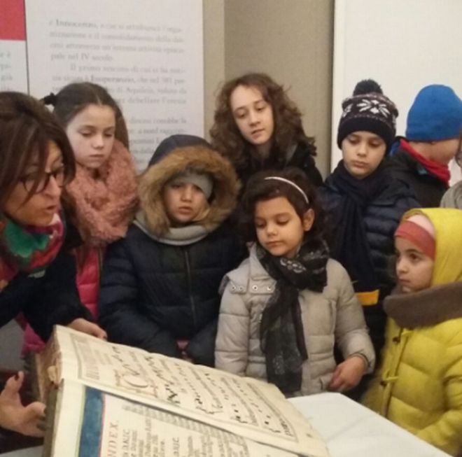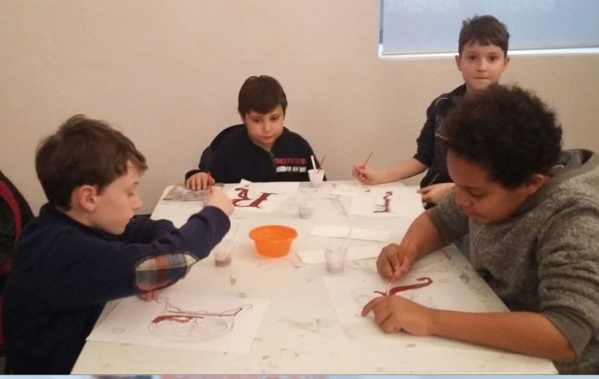 Al museo Diocesano i bambini dopo avere visitato le sale dedicate alle fonti scritte: pergamene, carte, libri, fogli dell’antico Codice purpureo di Sarezzano, si sono calati nei panni di un vero amanuense ed hanno realizzato con l’uso delle terre naturali le loro opere.