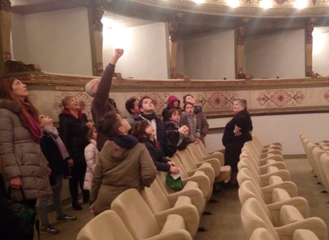 Ogni pomeriggio i bambini provvisti di cartina sono partiti novelli esploratori alla scoperta della città . Prima tappa alla torre e il parco del castello, luogo ideale dove all’ombra della storia giocare a bandiera tutti insieme. Poi sono seguite gite alla Biblioteca, dove i bimbi si sono potuti iscrivere al prestito librario e visitare le sale a loro dedicate. Il Teatro Civico è stato una scoperta che ha lasciato incantati tanti, che pur passando spesso in questa via centrale non immaginavano che dietro una delle tante anonime porte c’era un luogo così magico, fatto di palchi, barcaccia,palcoscenico, con tanti piccoli corridoi che si intrecciano  quasi in una sorta di labirinto.