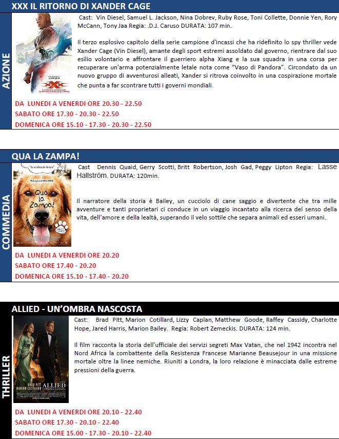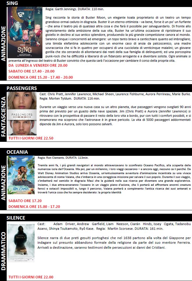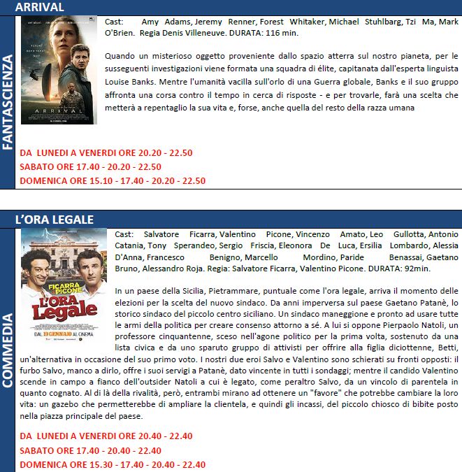 Diversi film in prima visione questa settimana alla multisala Megaplex Stardust di Tortona fra cui il tanto atteso “Arrival”. Per chi non li ha ancora visti suggeriamo di non perdersi Allied, Passengers e Assassinìs Creed.