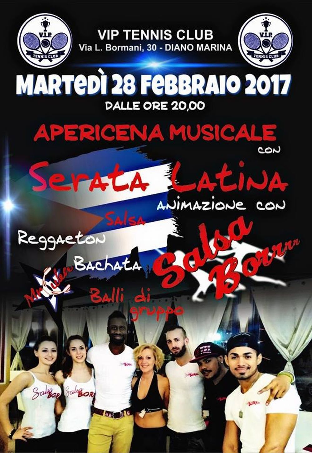 Dopo il grande successo di sabato sera con Dj Tex il vip tennis caffè non si ferma e organizza per martedì 28 apericena latino con l’animazione di deejay Arsenio.