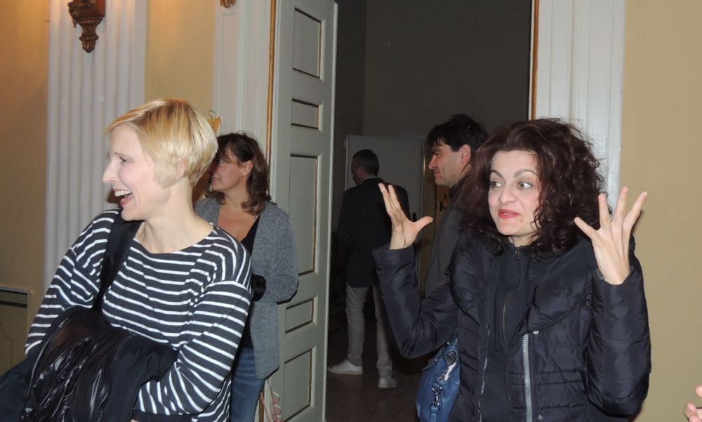 L’arrivo degli attori e regista al dopo spettacolo