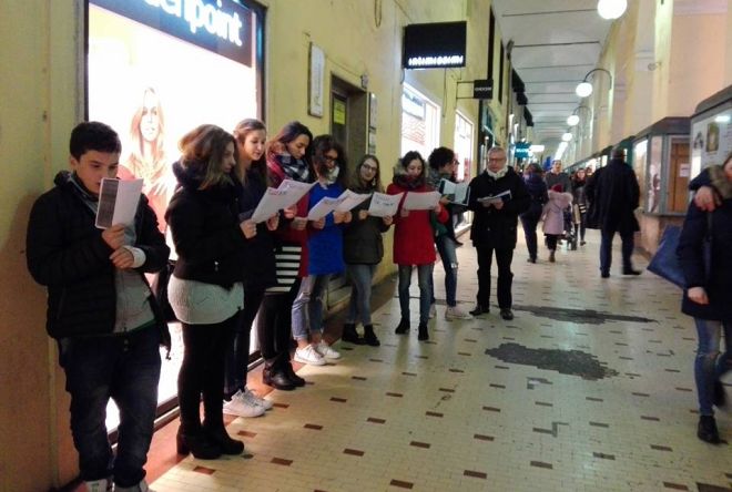 E’ stato anche organizzato nel corso principale di Imperia (portici) un FLASH MOB per Tullio De Mauro. I ragazzi, attrezzati di una sedia e di un libro, al fischio d’inizio, hanno letto ad alta voce le parole di Tullio De Mauro.