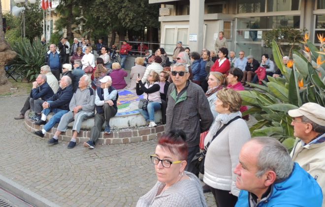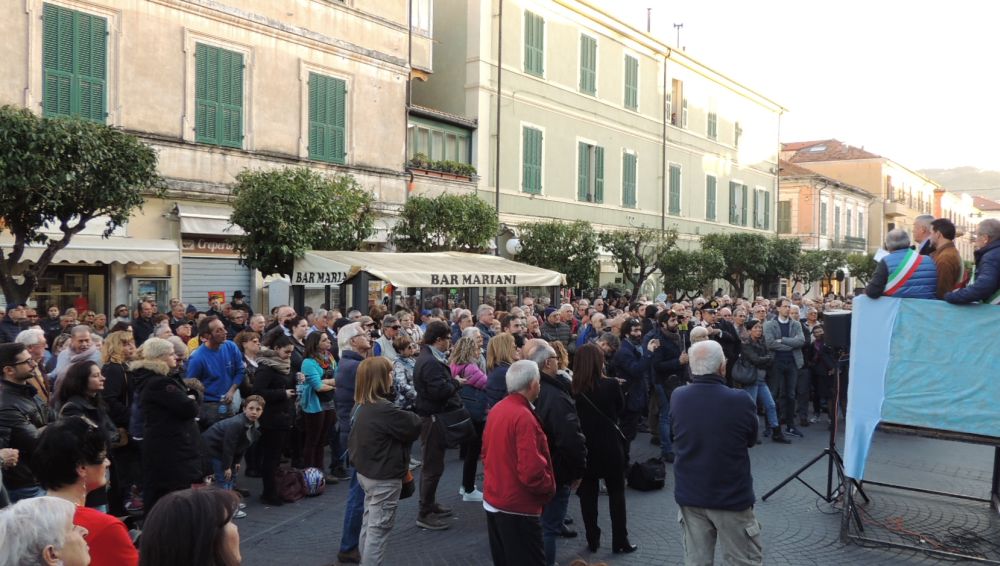 Venerdì ore 17: la  piazza del Comune di Diano Marina strapiena di gente. Sono tutti a fianco dei sindaci del Golfo dianese per dire “No all’arrivo indiscriminato di profughi e migranti.” La piazza del Comune  tiene 500 persone, ma molti erano assiepati in via Cavour, Corso Roma e via Genala e sono arrivati dopo. I vigili urbani a fine manifestazione hanno stimato i circa 700 le persone presenti che sono un’enormità se si pensa che Diano Marina conta circa 3.800 votanti, molti dei quali anziani.