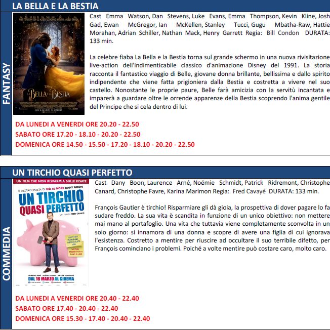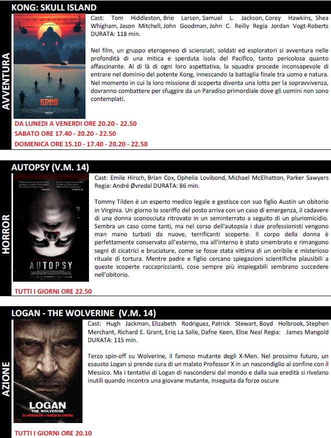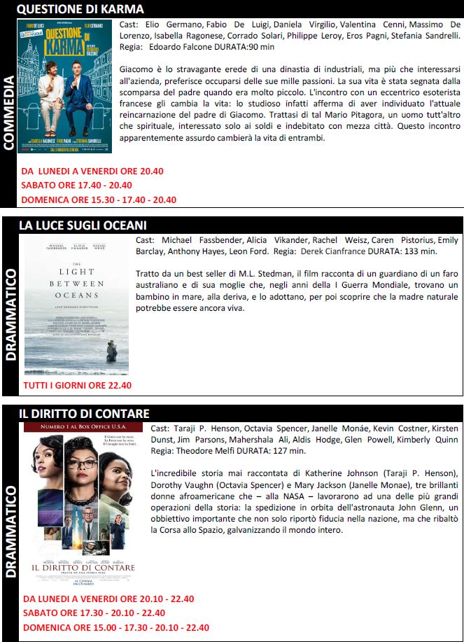 Di seguito tutte le trame e gli orari dei film