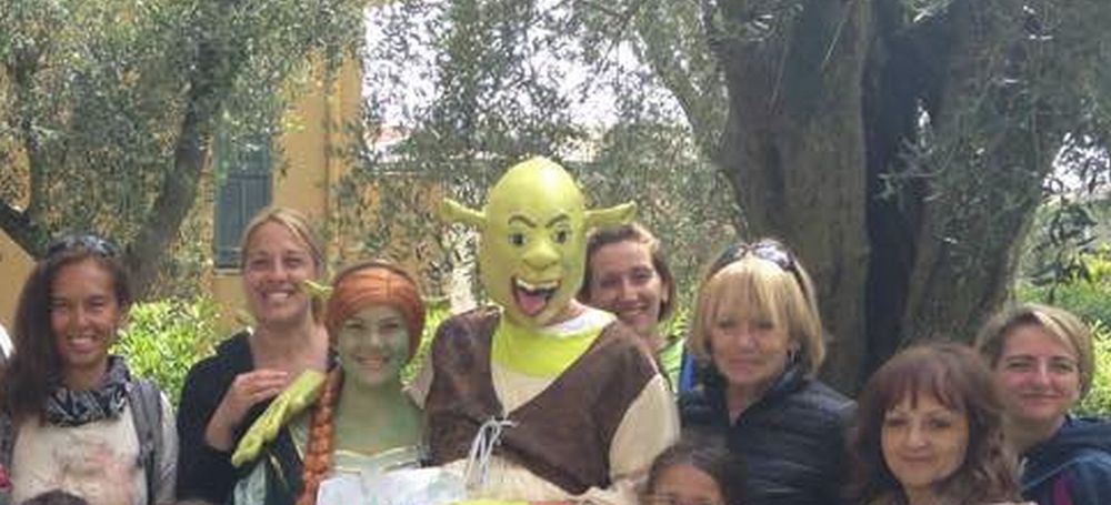 Super eroi come l’uomo ragno che sbucano all’improvviso, cartelli con frasi profonde, pupazzi dei animati, suonatori di chitarra nel bosco e tante altre sorprese mentre gli escursioni passeggiano tra le colline e i sobborghi della zona.