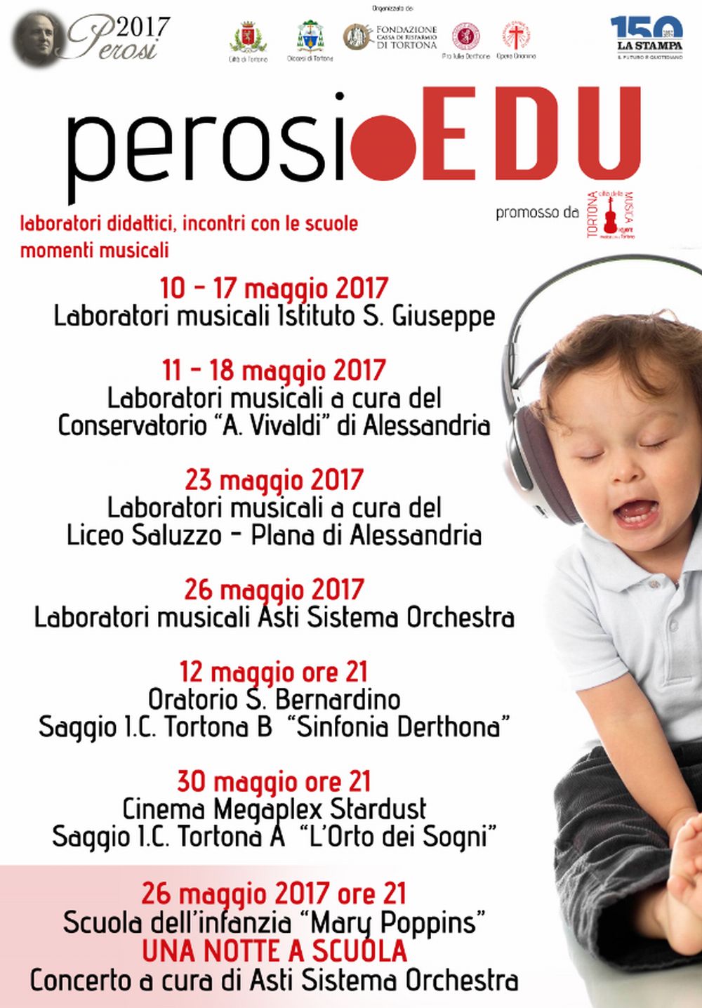 Questi laboratori musicali coinvolgeranno diverse realtà musicali del nostro territorio tra le quali il Liceo musicale Saluzzo-Plana di Alessandria, l’Accademia civica L. Perosi di Tortona, il Conservatorio di Alessandria.