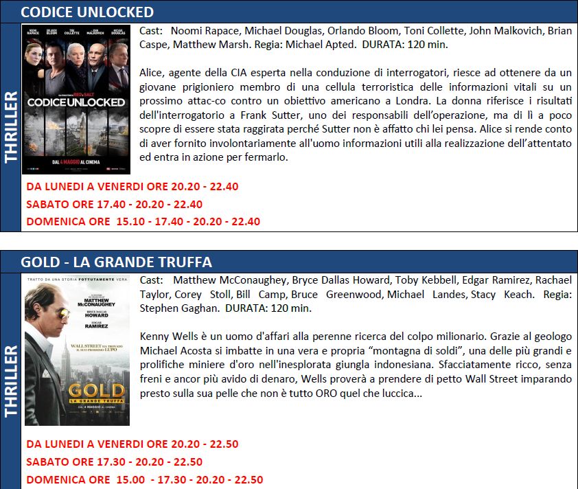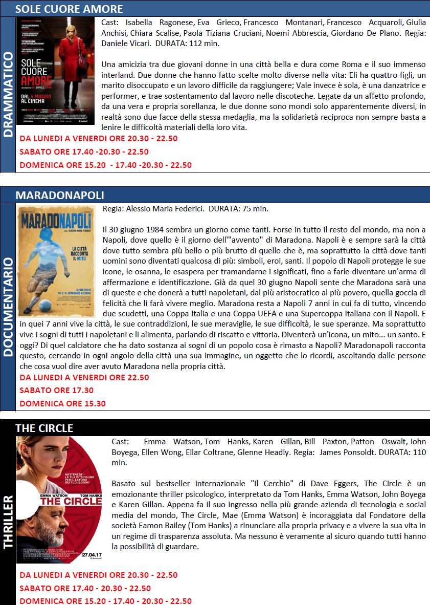 Se c’è qualche film che vi interessa e volete vedere, non aspettate la settimana successiva perché non è detto rimanga in programmazione.
