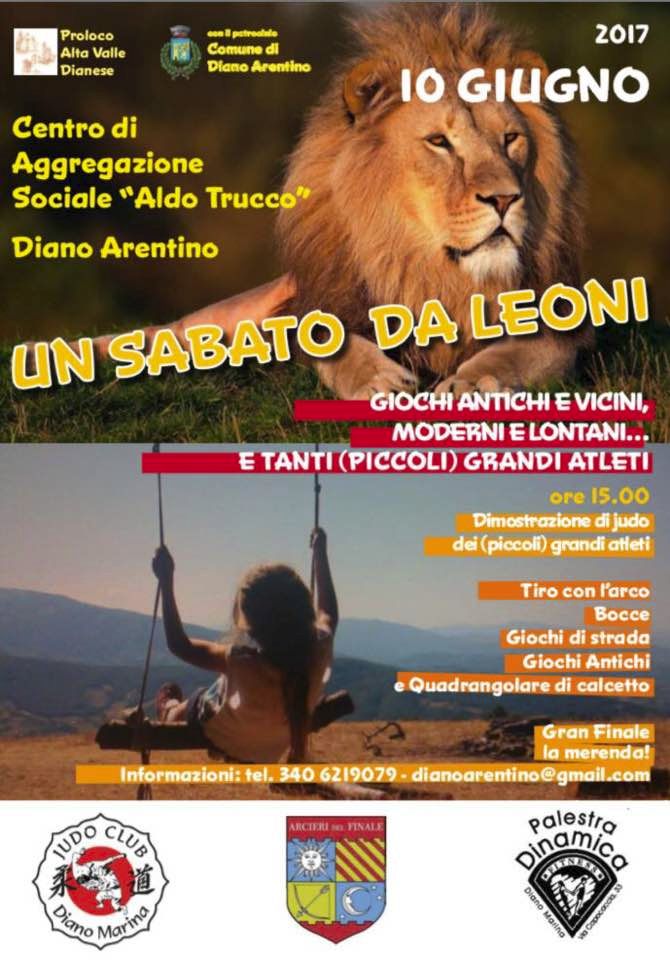 La pro loco Alta valle Dianese con il patrocinio del Comune di Diano Arentino organizza per sabato 10 giugno numerose manifestazioni in programma al Centro sociale “Aldo Trucco”.