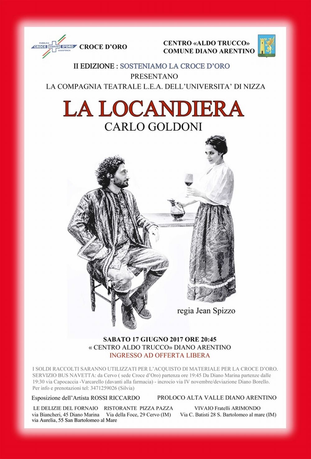 Per celebrare suoi 26esimo compleanno, la Croce d’Oro, di Cervo che offre suoi servizi di Pubblica Assistenza nel Golfo dianese e Imperia, ha deciso di festeggiare questo evento niente di meno che portando la Compagnia Teatrale della Università di Nizza L.E.A. Con la opera “La Locandiera” di Carlo Goldoni. Considerata uno degli esempi più riusciti della “commedia di carattere goldoniana, con cui l’autore veneziano capovolge e rinnova la tradizione della “Commedia dell’Arte”.