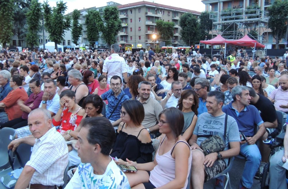 Bis di successo per lo spettacolo gratuito sabato sera ad Arena Derthona. In piazza Allende Ale&Franz hanno dato il meglio di sé stessi con uno spettacolo di improvvisazione iniziato con il simpatico coinvolgimento del nostro giornale: uno scambio di battute, d fronte a 3 mila persone durato diversi minuti che di fatto ha aperto la serata dove i due comici, prima hanno coinvolto il pubblico e poi sono scesi tra la folla a farsi fotografare e firmare autografi.