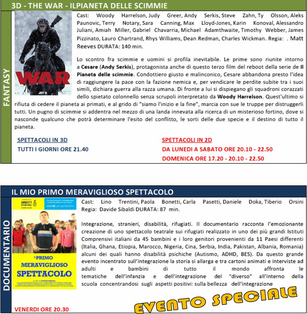 E’ arrivata l’estate e, come già avvenuto lo scorso anno, i distributori dei film in prima visione hanno anticipato di un giorno la programmazione cinematografica facendo uscire i film nella giornata di mercoledì invece che al giovedì.