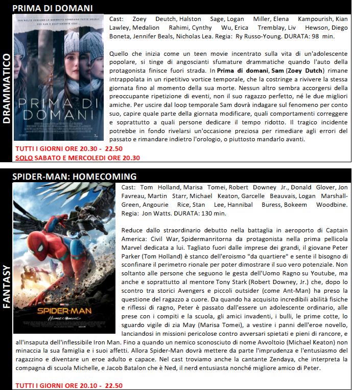 Di seguito trame e orari