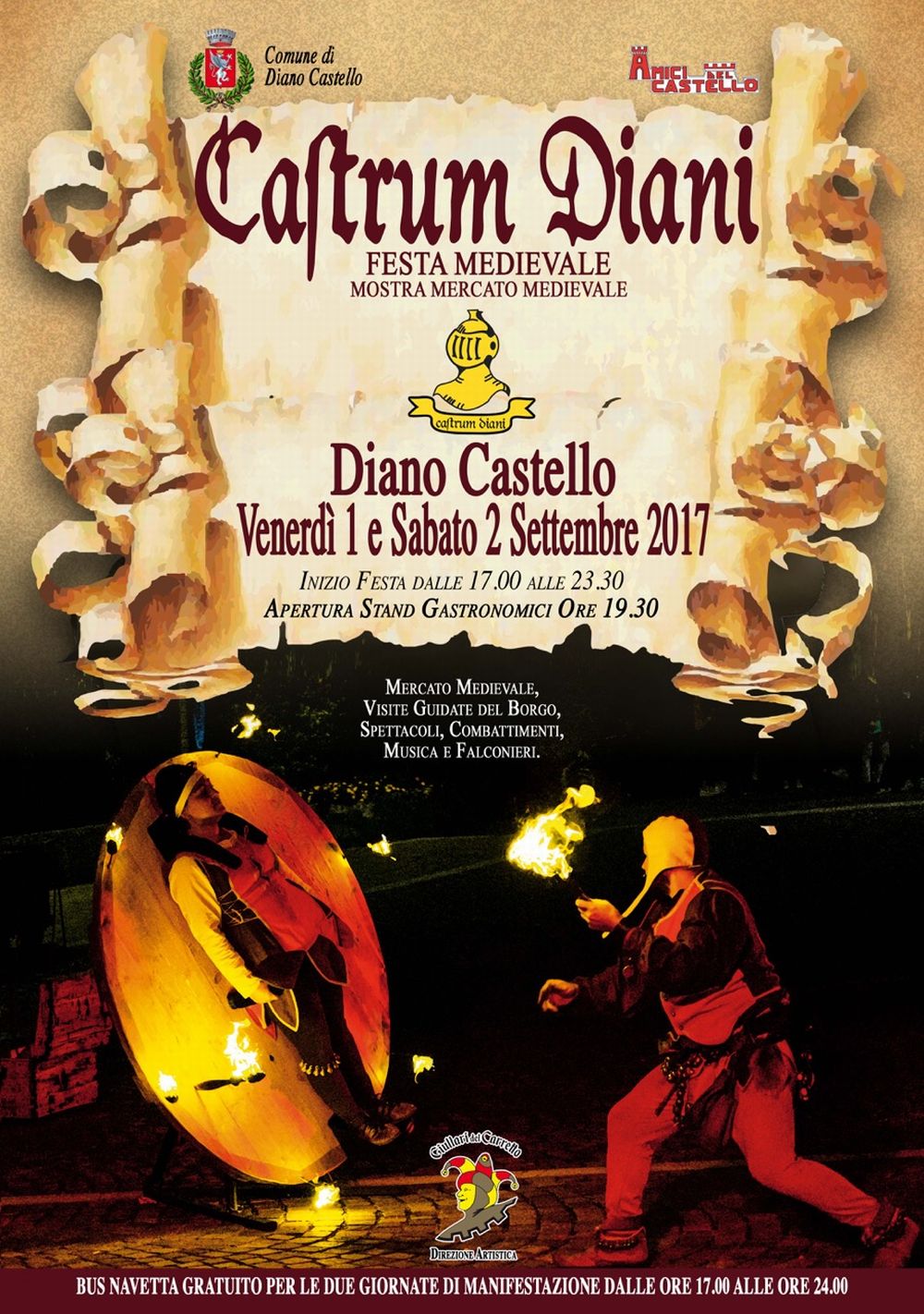 A Diano Castello oggi e domani c’è la Festa medioevale “Castrum Diani” con navetta gratuita da Diano Marina 1 Set, 2017 | Diano Castello | Torna a Diano Castello “Castrum Diani” la tradizionale Festa medioevale con navetta gratuita da Diano Marina, questo il programma Download QR 🠋 Correlati
