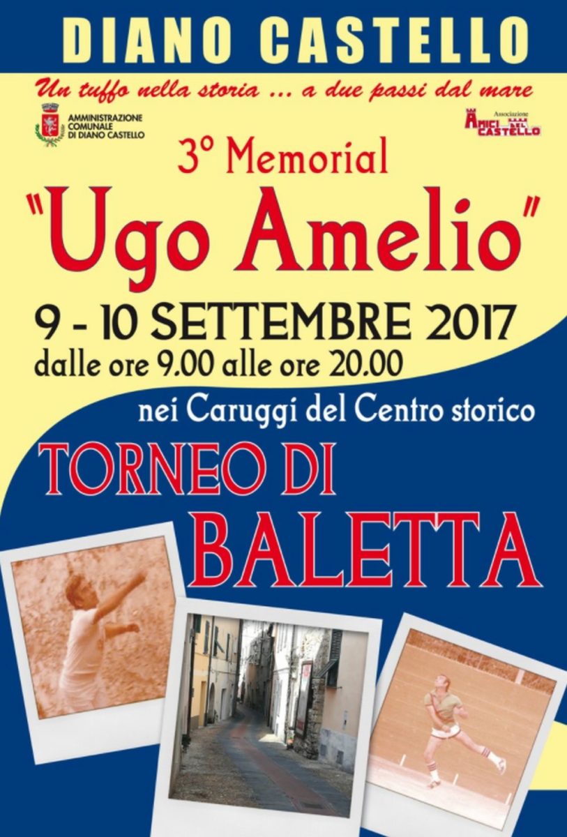 Caratteristico appuntamento di sport e folclore sabato e domencia a Diano Castello, dove si svolgerà il 3° Memorial “Ugo Amelio” TORNEO DI BALETTA nei caruggi del centro storico