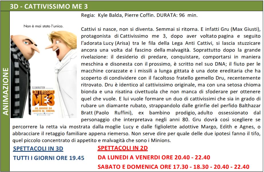 Di seguito trame ed orari dei film in programmazione fino a martedì prossimo.