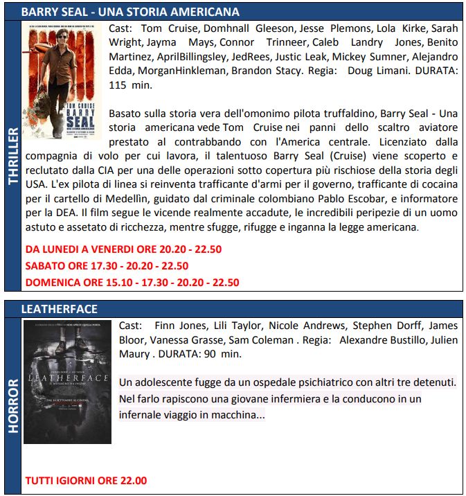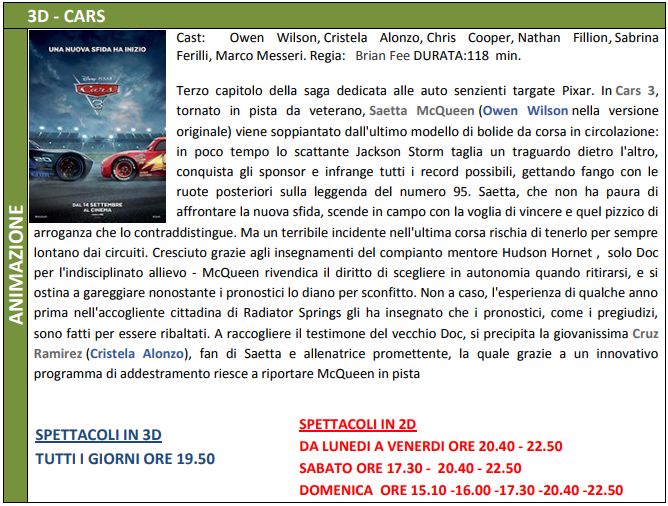 Cars 3 e l’ultimo di Tom Cruise “Barry Seal”. Sono questi due fra i film più attesi del week end in programmazione alla multisala Megaplex Stardust di Tortona.