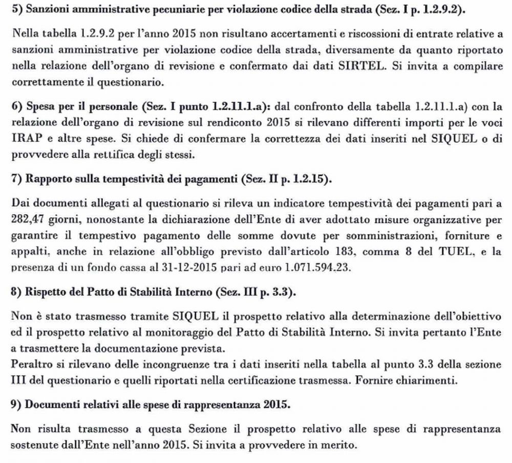 Di seguito pubblichiamo per intero la lettera coi rilievi che la Corte dei Conti fa nei confronti del Comune di Castelnuovo Scrivia, siccome la Corte dei Conti imponeva al Comune di Castelnuovo di rispondere entro 15 giorni, cosa che immaginiamo avrà fatto, invitiamo il Comune a fornirci copia della risposta in modo da garantire ai lettori una equa e corretta informazione.