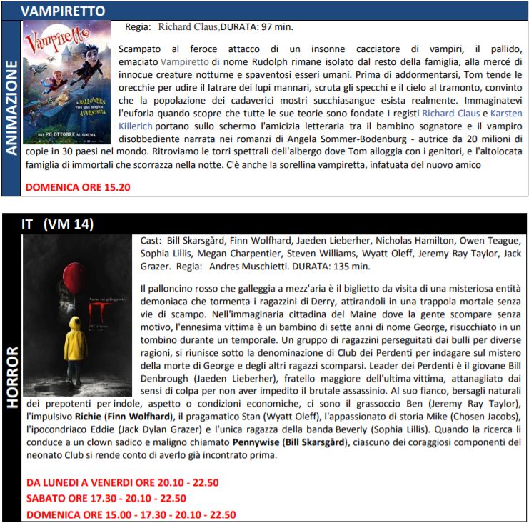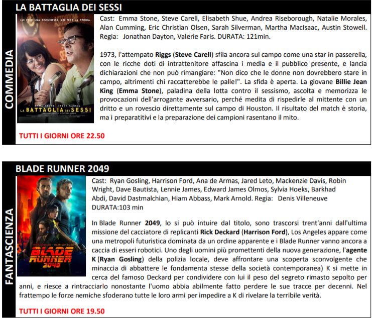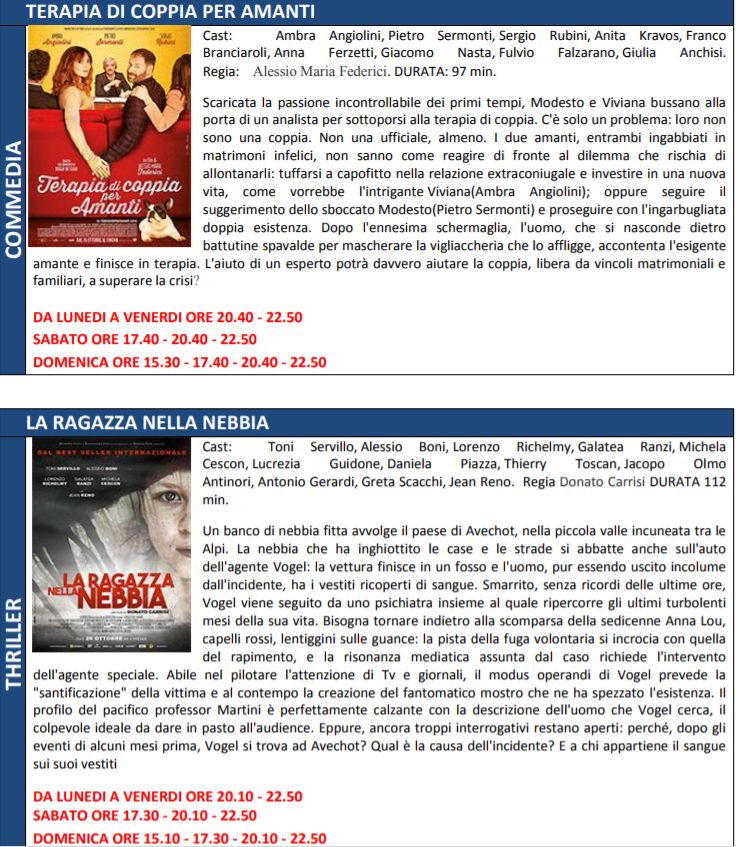 Di seguito trame ed orari.