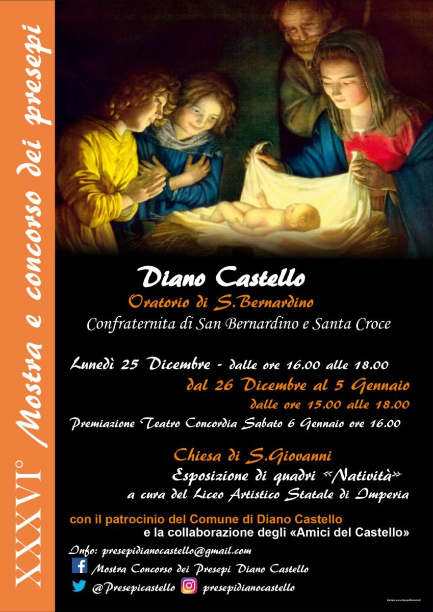 E’ stata inaugurata il giorno di Natale la mostra dei presepi nel Comune di Diano Castello che resterà aperta fino al 5 gennaio. Di seguito orari e altri appuntamenti