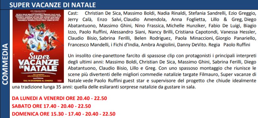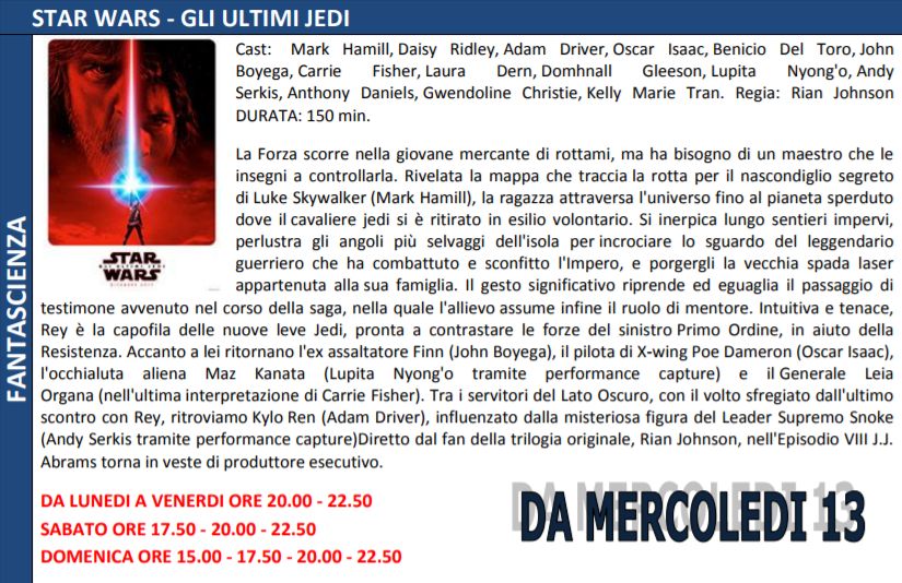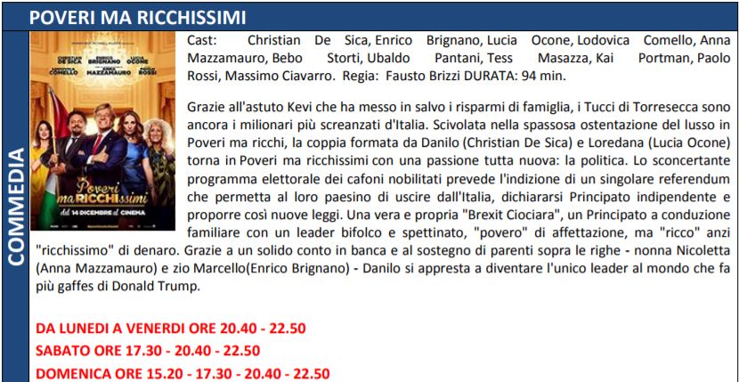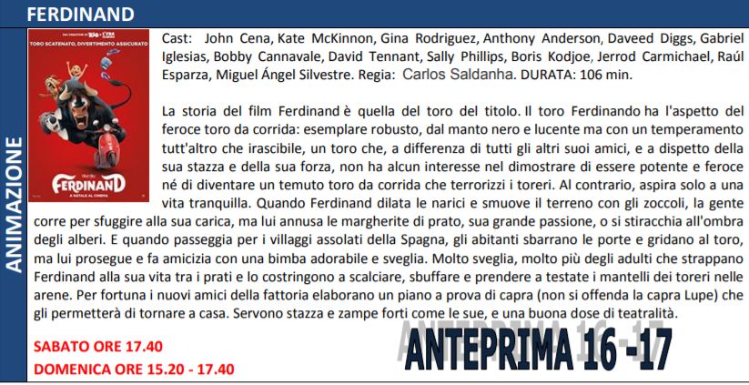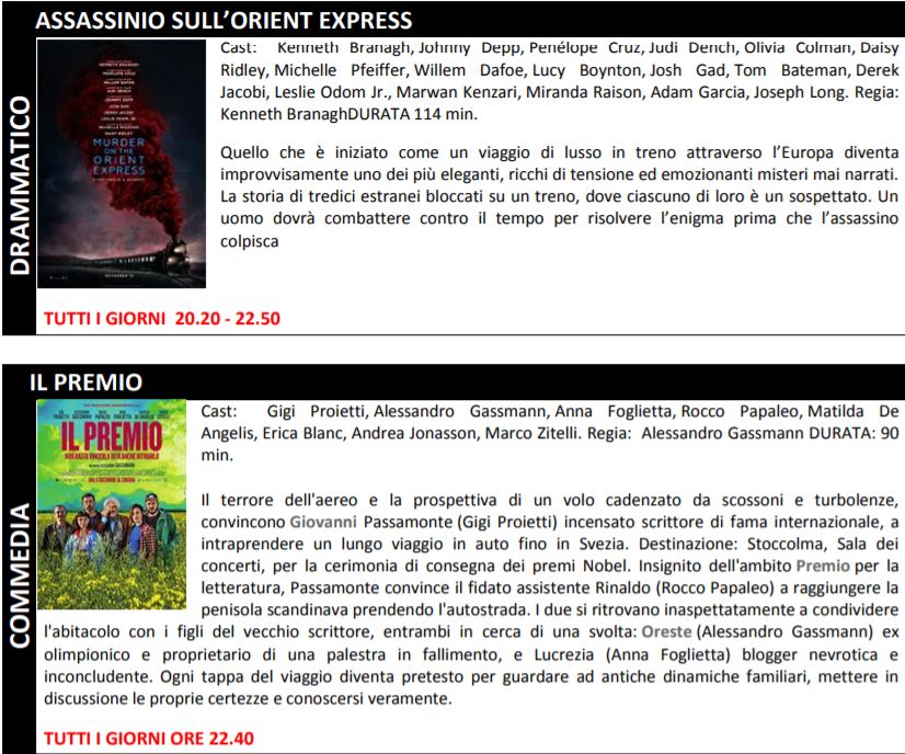 Di seguito trame e orari dei film in programmazione