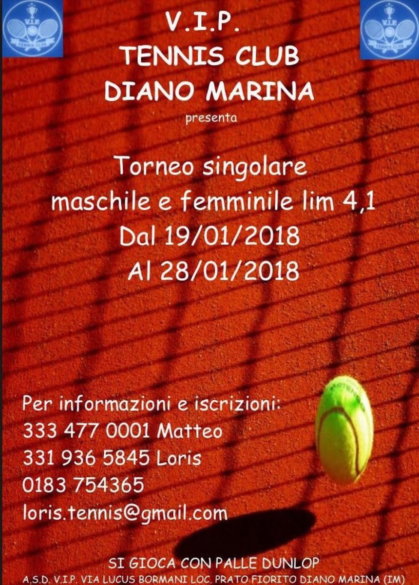 Venerdì 19 gennaio al Centro Vip tennis club di Diano Marina in via Lucus Bormani, prende il via la nuova stagione agonistica 2018 con un torneo