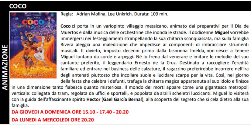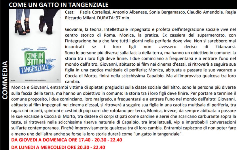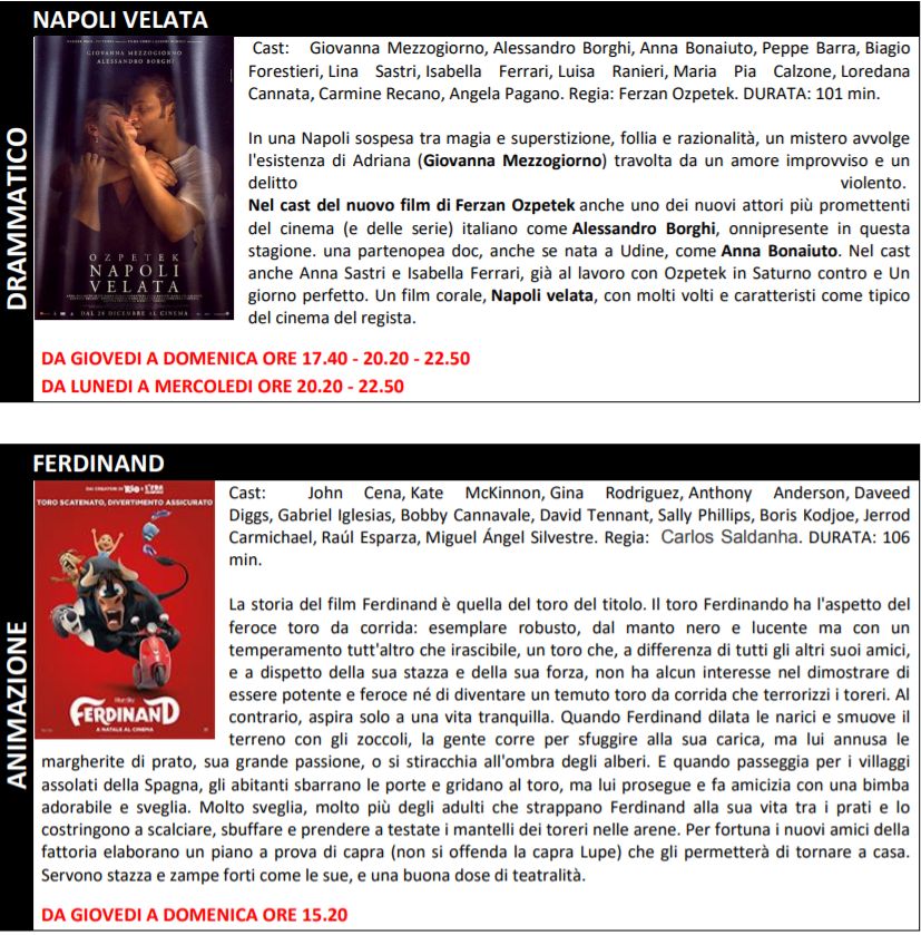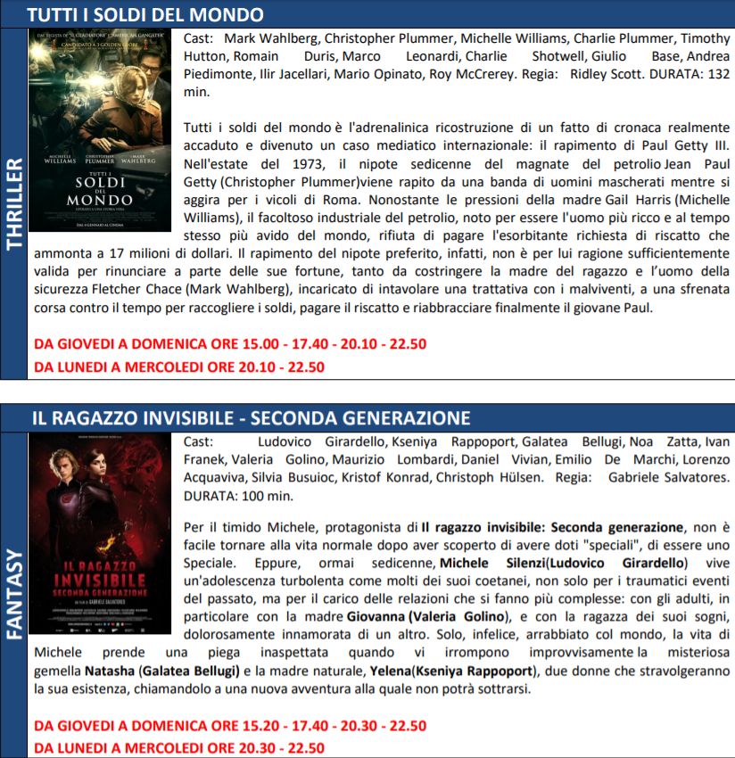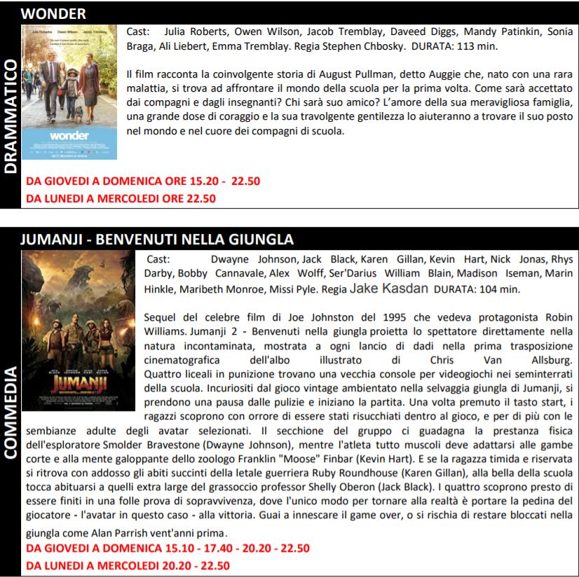 Di seguito tutte le tarme e gli orari dei film in programmazione: