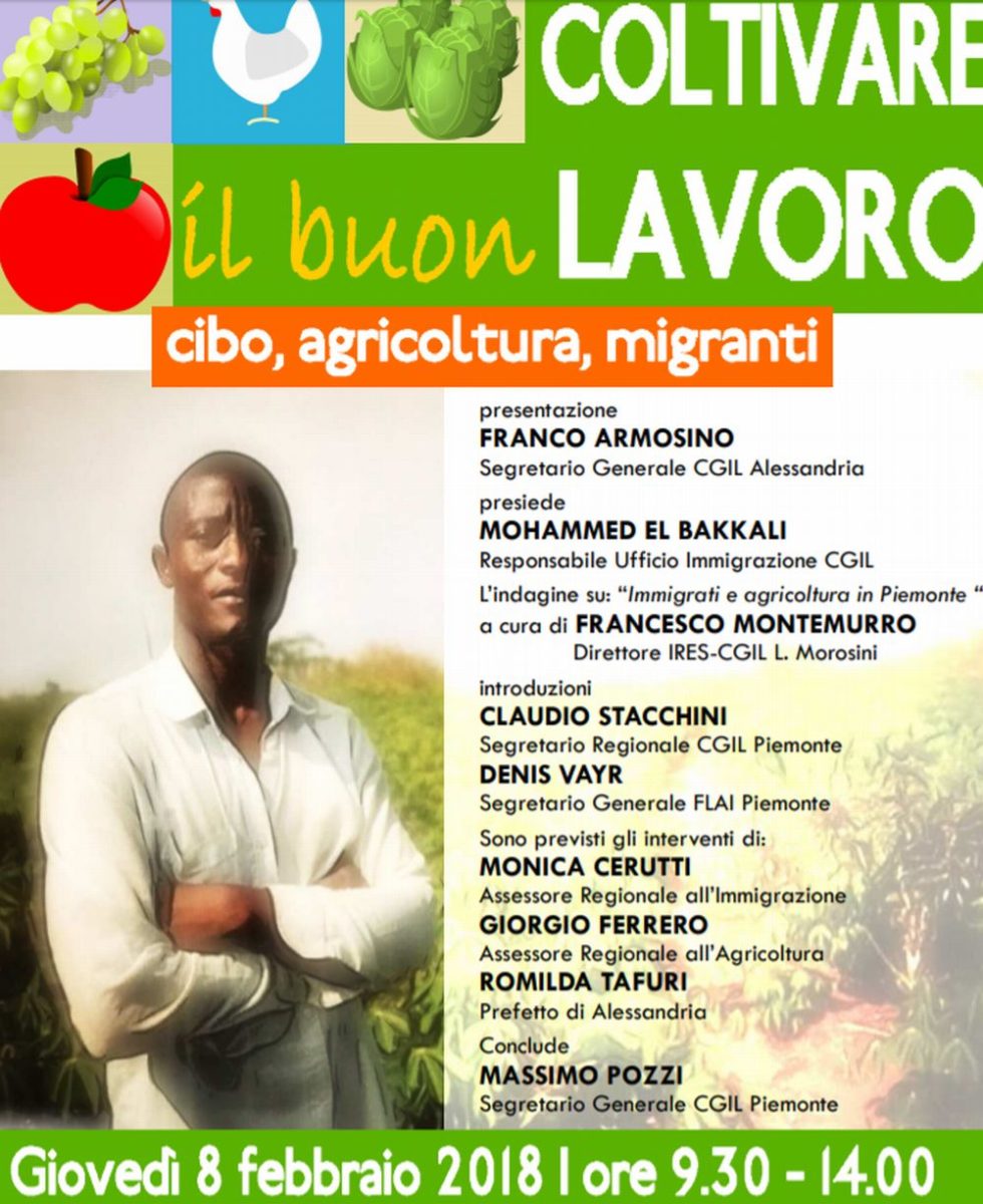 Giovedì ad Alessandria un convegno su agricoltura e migranti 7 Feb, 2018 | Alessandria | Giovedì 8 febbraio presso la camera del lavoro di Alessandria in via Cavour si svolge un convegno su agricoltura e migranti. Di seguito il programma Download QR 🠋 Correlati