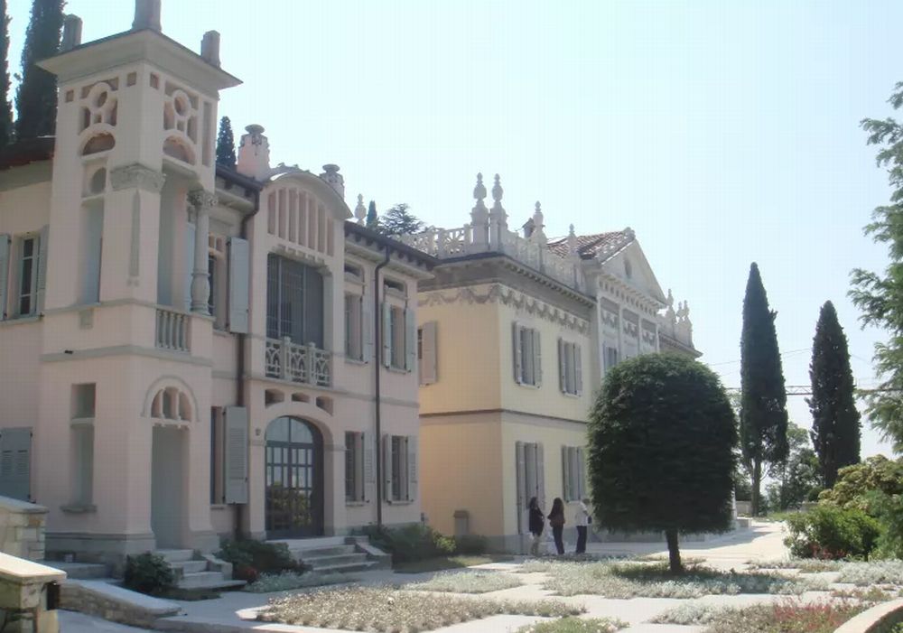 In alto una foto dell’ex Hotel Teresa oggi, sotto una villa disegnata dall’architetto Riccardo Barbuti insieme a Dana Ghighi.