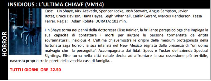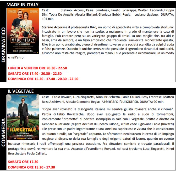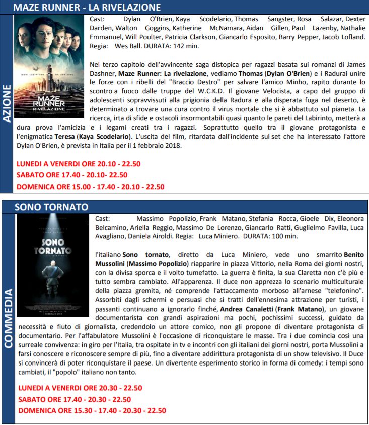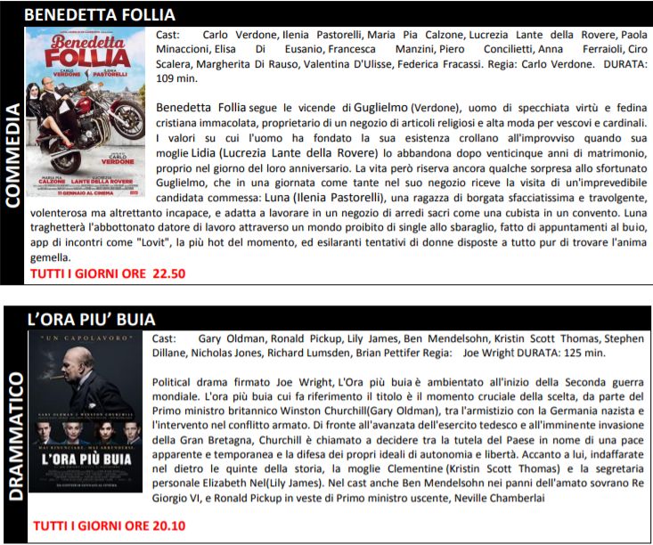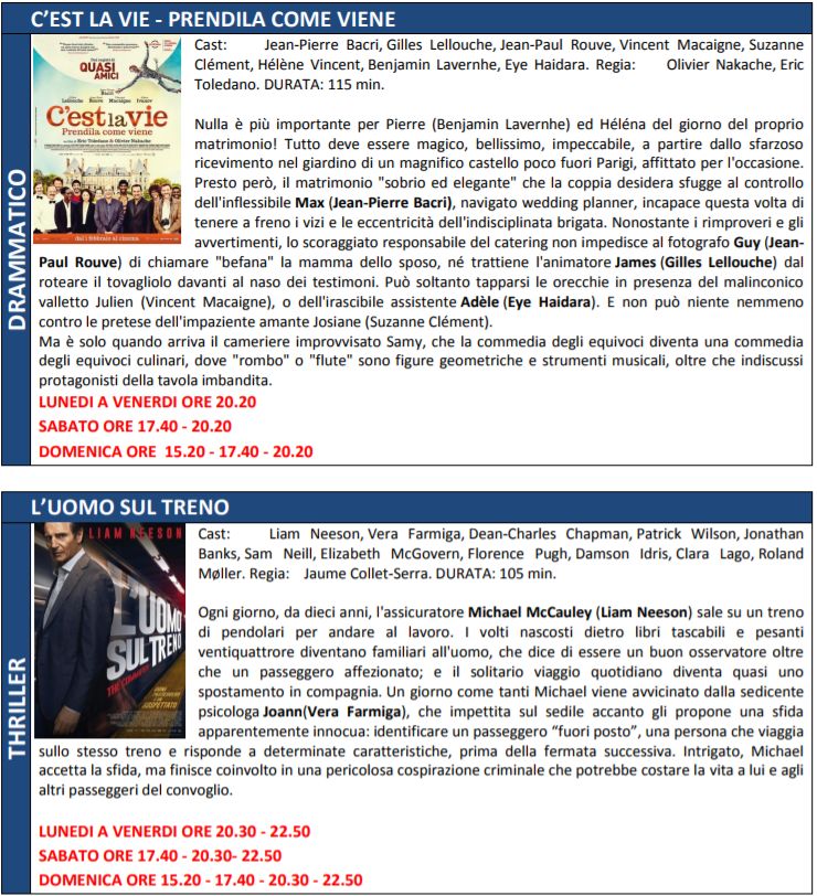 Di seguito tutte le trame e gli orari del film in programmazione.