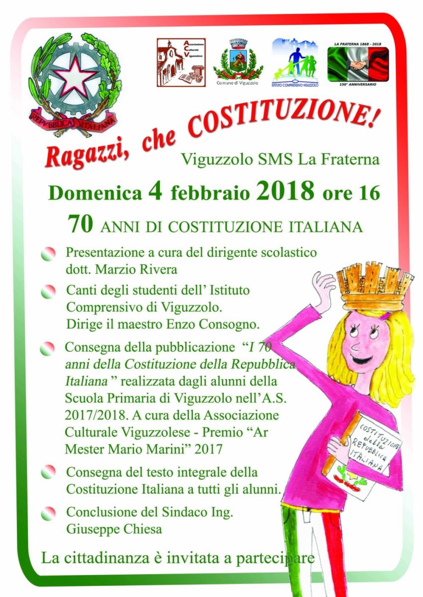 “Iniziamo l’anno – dicono i responsabili dell’associazione – con un evento importante: quest’anno la nostra Costituzione compie 70 anni e poiché il lavoro scaturito dalla seconda edizione del Premio “Ar Mester”, proprio su questo tema, ci ha
