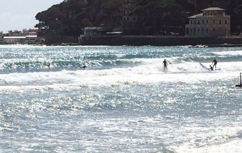 La splendida giornata di sole e il mare leggermente ondoso ha richiamato anche una cinquantina si surfisti che dal mattino al primo pomeriggio si sono alternati nella acque cristalline di Diano Marina.