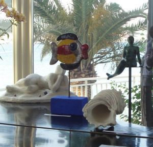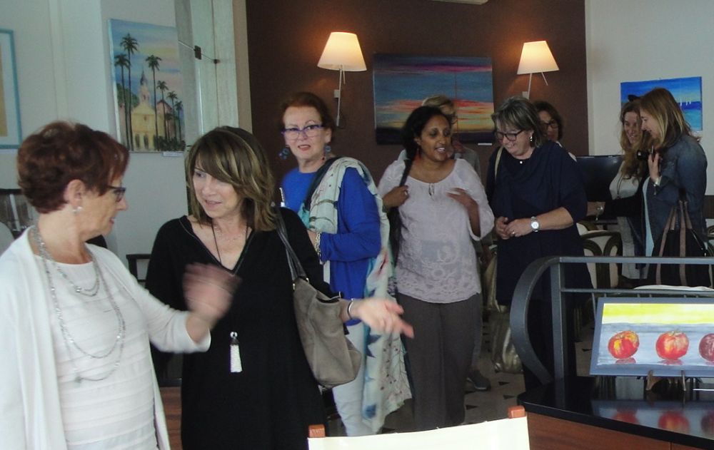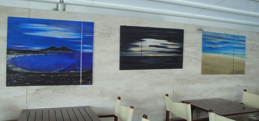 La mostra ricca di una quarantina di quadri alcuni di grandi dimensioni e 28 opere tra sculture in bronzo, pierta del Gard, terra cotta e ceramiche si sviluppa nello spazio della reception dell’Arc en Ciel e lungo la hall d’ingresso, per continuare poi nella zona del bar e nella sala ristorante; altri interessanti quadri di gran formato si trovano infine nella veranda che si affaccia sullo splendido Golfo Dianese.