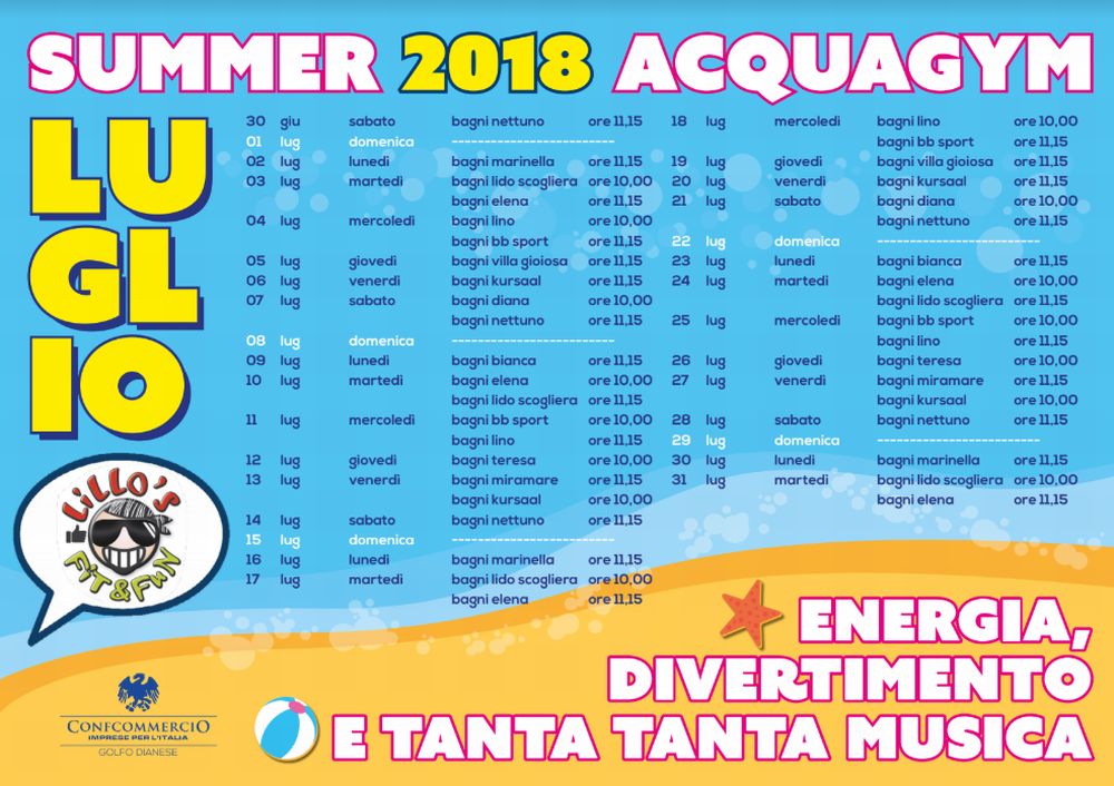 Come per gli anni passati anche per il 2018 la Confcommercio ha deciso di arricchire l’estate di Diano Marina con l’iniziativa “Summer 2018 Acquagym.”