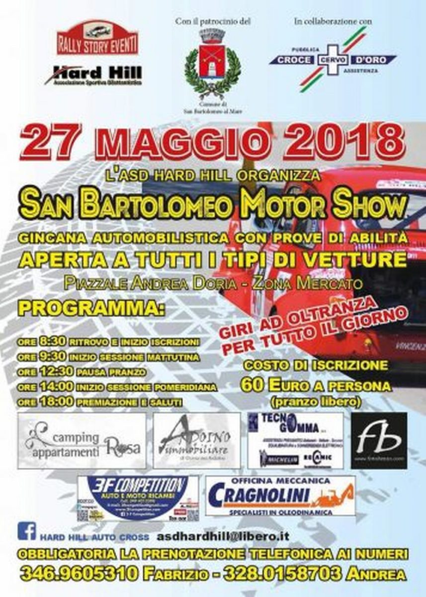 Appuntamento con lo spettacolo automobilistico domenica 27 maggio a San Bartolomeo: torna la Gimkana automobilistica con una serie di iniziative che potete leggere sotto