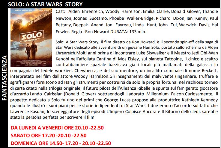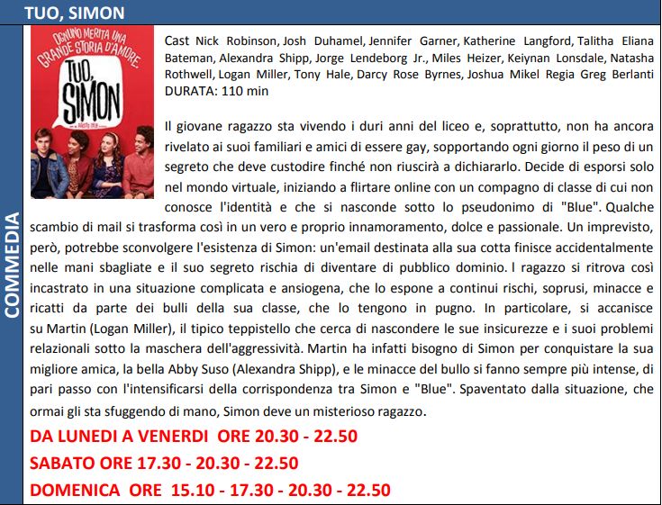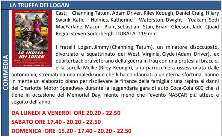 Di seguito pubblichiamo le trame e gli orari dei film del week end a Tortona. Diverse quelli nuovi per un’offerta che spazia tra svariati generi e visto che praticamente ogni pomeriggio nel Tortonese piove, perché non andare al cinema?