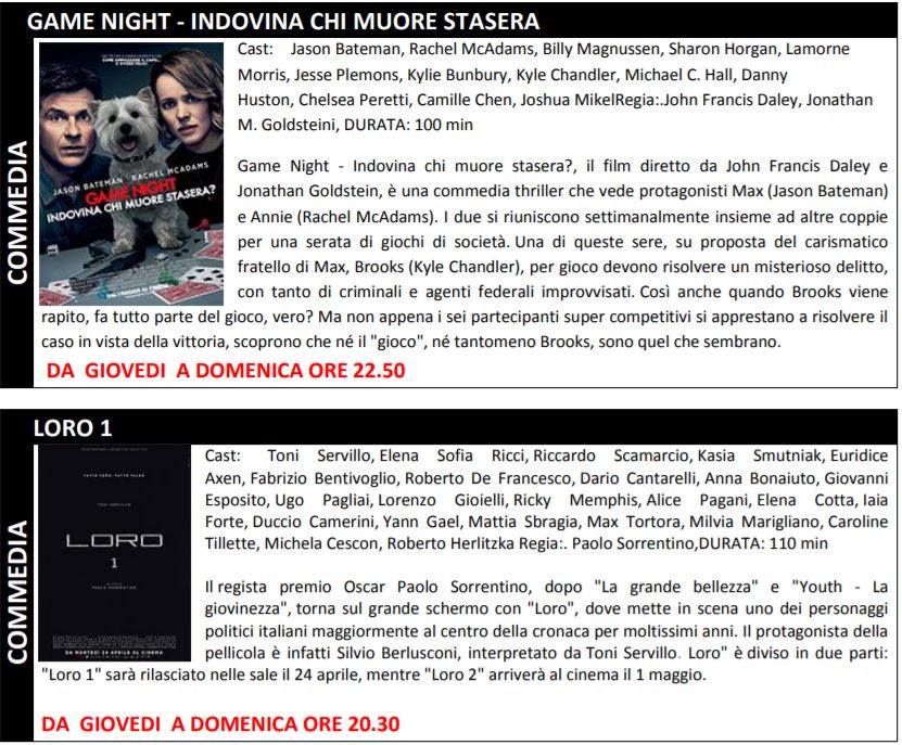 La storia di berlusconi (loro 1 & 2) film per tutti e diverse “Commedie”. Questo il menu della settimana alla multisala cinematografica “Megaplex Stardust” di Tortona